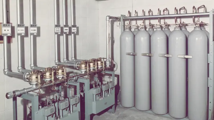 供給装置に使用していた圧力調整弁を利用し、加圧する大流量の窒素ガスを圧力調整することにより、窒素ガス容器の数だけ減圧弁を設置する他社のシステムとの差別化を図った。