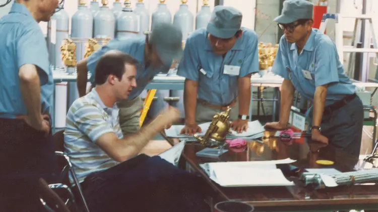 当時、他社と共同開発したハロン1301消火設備は、自治省消防研究所での確認実験を経て、特例で東京消防庁の認可を取得。化学的な燃焼抑制作用により大きな消火能力を発揮するハロン1301消火設備は、日本初であり優れた消火性能と安全性を兼ね備えたもので、消火剤による汚損がなく、二酸化炭素消火設備に比べ人に対する毒性がきわめて低く、設置スペースも小さいなど数々のメリットを保持。