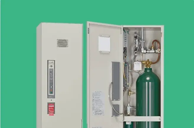 ガス消火設備のなかでも最も古くから採用され、消火技術が完成された消火設備です。1961年に消防法に定められて以来、多様な防火対象物で優れた消火実績を上げています。ローコストで、わずかな隙間にも浸透する特性があるため、構造が複雑で必要消火剤量の多い局所消火に適しています。二酸化炭素消火剤は有害で危険なため、高度な安全対策が必要です。