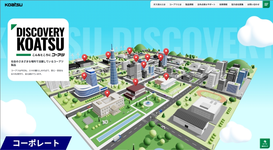 皆さんご存じないかもしれませんが、実は色々な場所に入っているガス消火設備、そんなガス消火設備の発見を楽しめる「こんなところにコーアツ」のページができました!マウス操作やタップ操作でぐるぐる回して気になるピンを押せば、建物の情報と導入できる製品の詳細が確認できます。ぜひ一度アクセスして触ってみてください!